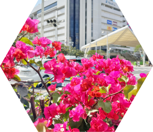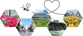 パレットくもじの周辺には久茂地川やビル、県道沿いに植えられた様々な花が1年を通して咲いています。みつばちたちは、国際通り、波の上、壺屋、セルラースタジアムなどパレットくもじを中心に半径2kmを飛び回り蜜を集めています。