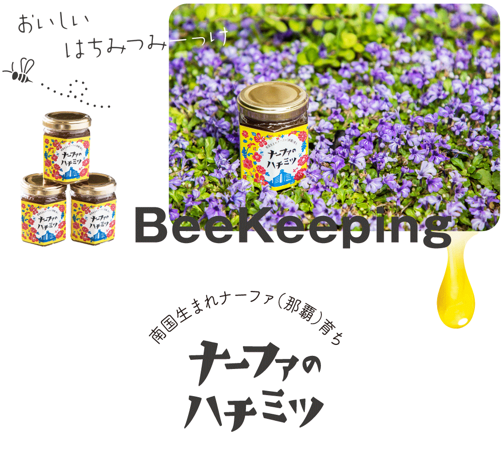 ミツバチが集めたハチミツは、 那覇の市街地のビルや車道に咲く花々のもので、 自然環境と共存し育ちました。