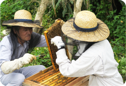 南南城市にある楽ワーク福祉作業所の協力のもと養蜂活動を行っております。楽ワーク福祉作業所は身体や心身に障がいを持たれた方の社会復帰を支援しております。